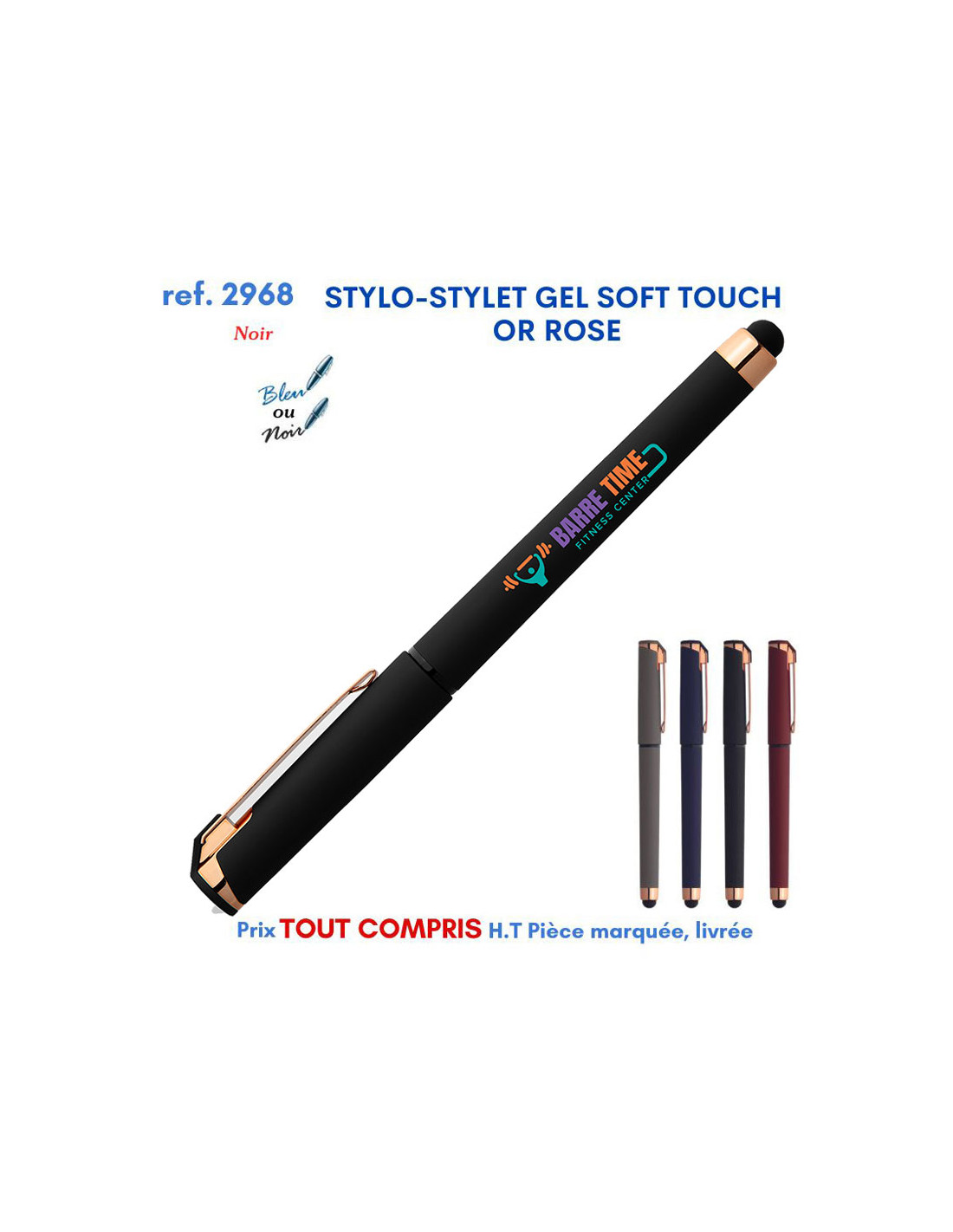 N'oubliez pas de sauvegarder votre personnalisation pour pouvoir l'ajouter au panier.Stylo gel soft touch et stylet intégré